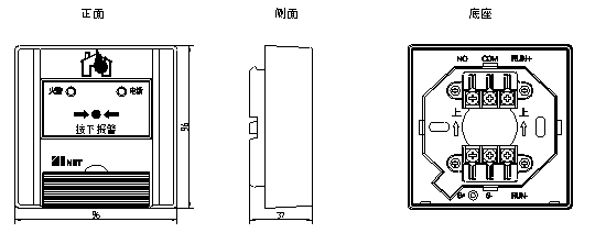 三、J-SAP-EIN20型手動火災報警按鈕外形及安裝尺寸