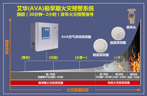 吸氣式感煙火災探測器其靈敏度是傳統普通的煙感1000倍左右,吸氣式感煙火災探測器還可以檢測到運用早期的技術無法看到的更小的空氣顆粒——這些顆粒經常是在過度受熱這一火災的早階段以及明火中產生出來的。