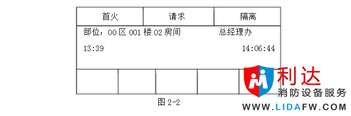 本菜單下面一行五個區域分別對應其下面貼膜上的各內容。區為火警信息,第二區為命令信息,第三區為模塊回答信息等。各區域數字中行為事件總數,第二行為事件當前地址。當某區域有信息時,按與顯示區域中文相對應的按鍵,相應區域的數字信息便反顯,此時中間“部位”欄中顯示的便是光標處設備的具體信息。部位左下的時間為事件發生時的時間。